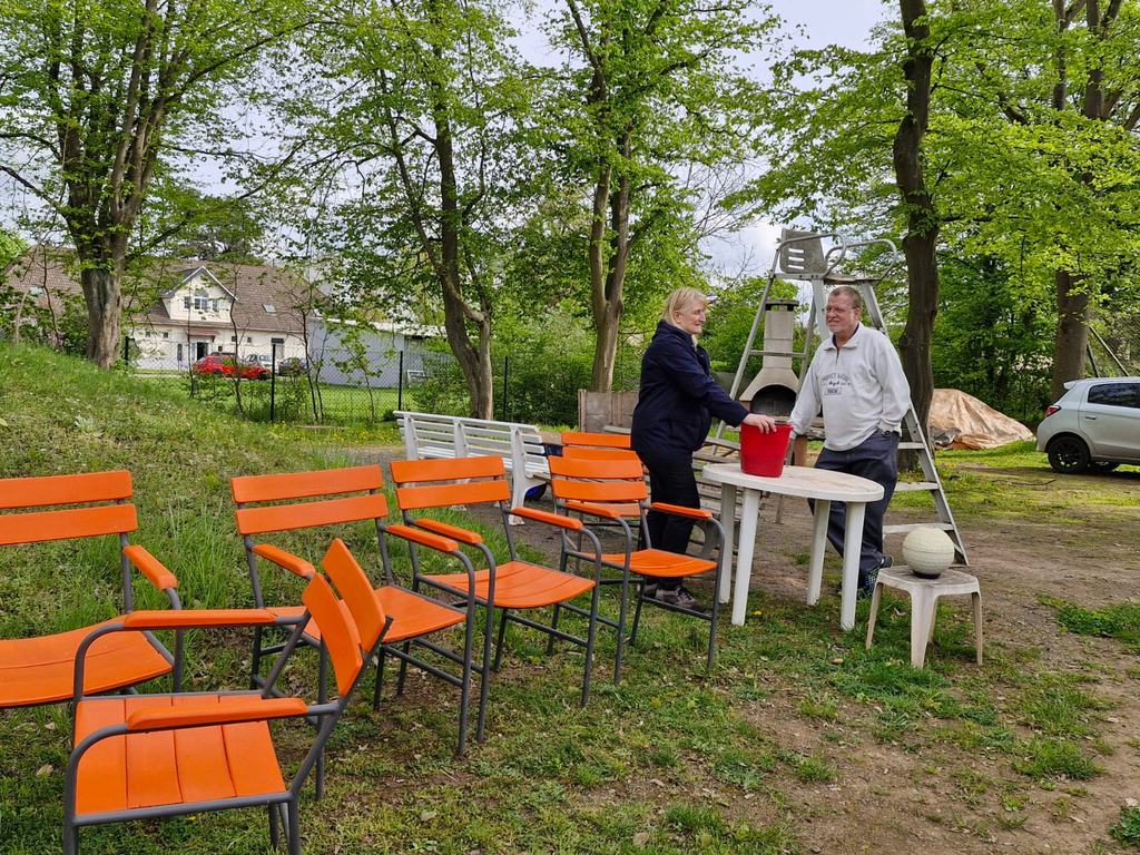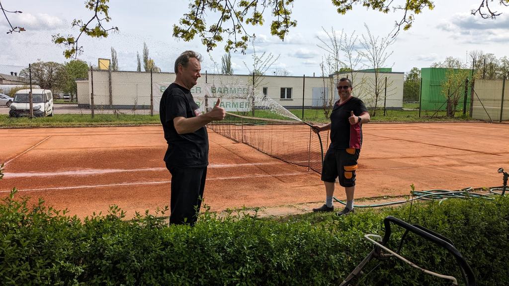 Die Linien auf Platz 6 wurden entfernt, die Außenterrasse samt Stühlen gekärchert sowie das Vereinshaus auf Vordermann gebracht.