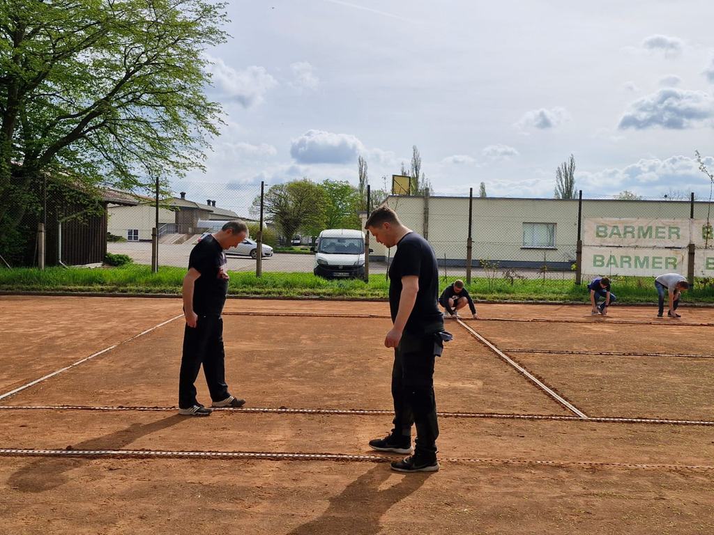An einem wunderschönen Frühlingstag trafen sich 20 tennisbegeisterte Erwachsene und 6 Kinder zum alljährlichen Frühjahrsputz.