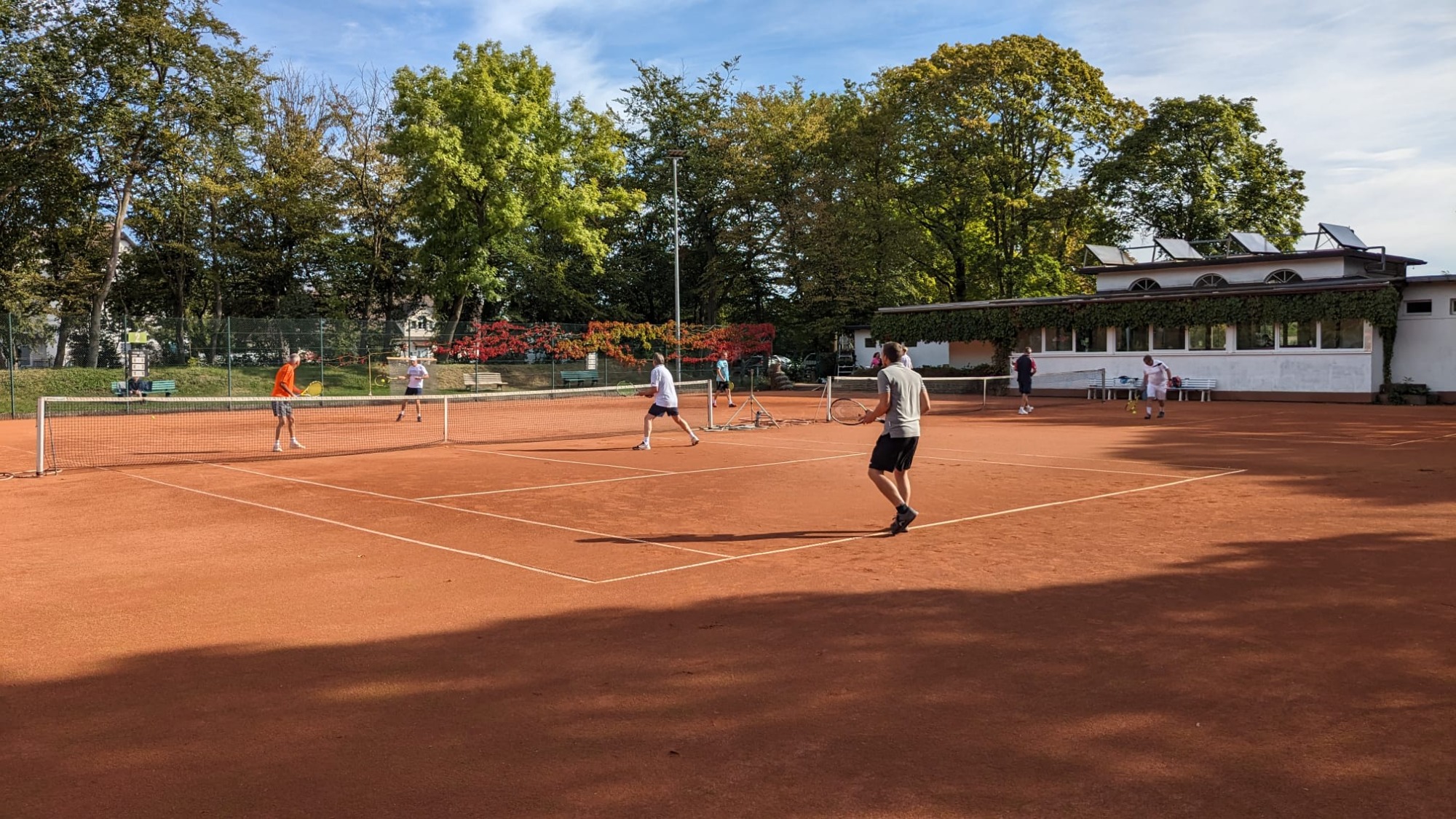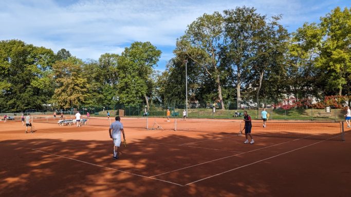 8 Frauen und 8 Männer standen auf der aktiven Teilnehmerliste und so entschied man sich im geschlechtsspezifischen Doppelmodus zu spielen. Nach jedem Spiel über 20 Minuten wurden die Doppelpartner neu ausgelost, was für zusätzliche Spannung und Freude sorgte. Die Bälle waren in der wunderschön scheinenden Spätsommersonne teilweise heftig umkämpft und kein Punkt wurde vorzeitig abgegeben. Oft prallte jugendlicher Elan und Power auf die Raffinesse und Taktik der Älteren, was dem Ganzen eine besondere Würze gab.