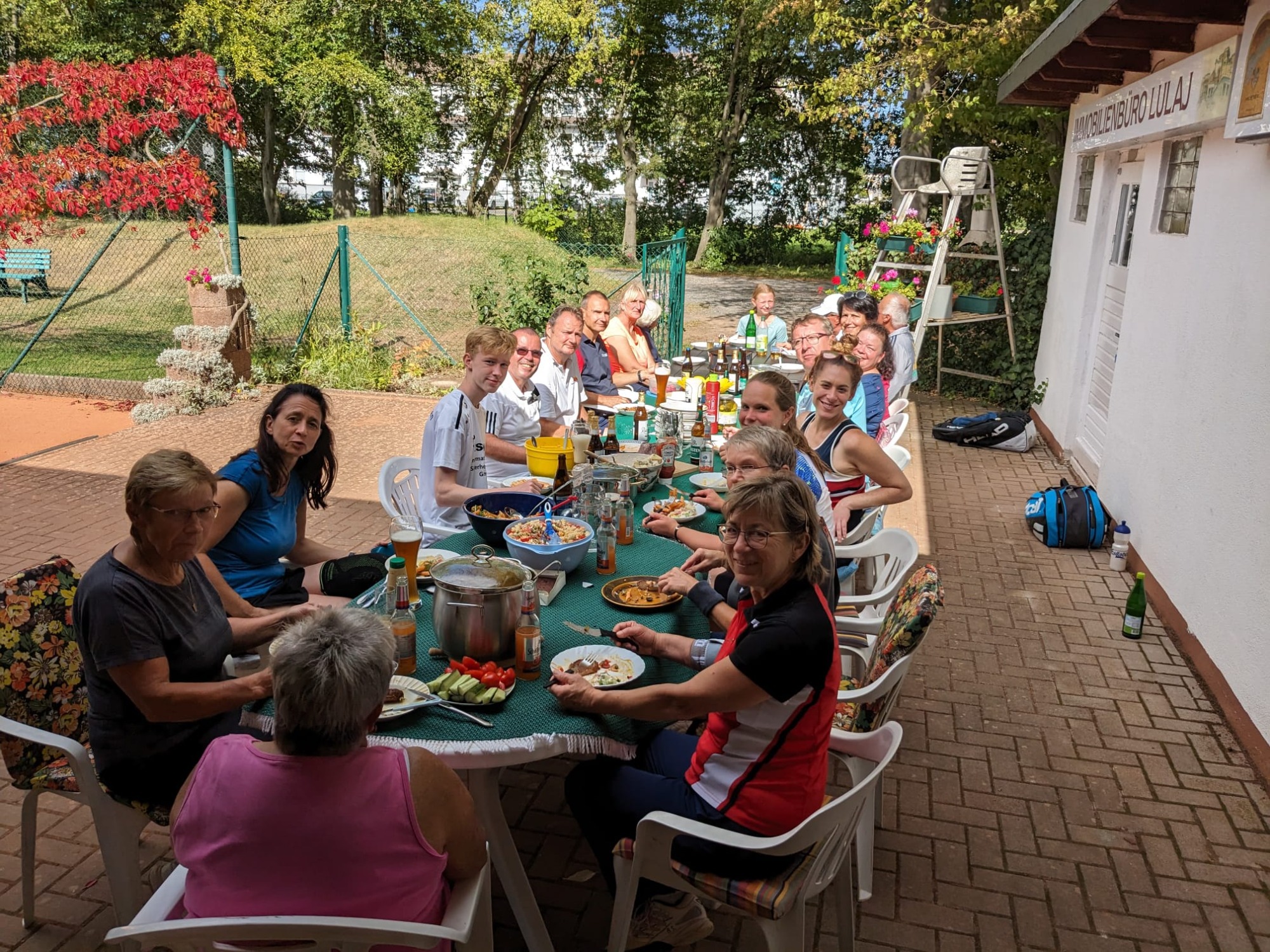 Mit all diesen leckeren Sachen waren die Bäuche schnell gefüllt. Da das Wetter einfach toll war und außerdem noch 4 Kuchen auf ihren Verzehr warteten, wurde eine 2. Runde an selbst gewählten Paarungen im Einzel- und Doppelmodus eingeläutet. Gute 2 Stunden tolles Tennis wurde noch gespielt, bevor es zum gemütlichen Kaffeeklatsch ging.